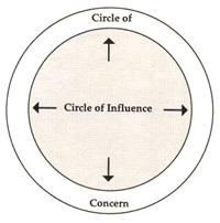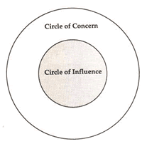 The Circle of Concern is everything we might be concerned with – from world peace to lunchtime. The Circle of Influence is what we can actually do something about.