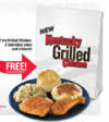 The Oprah Show is giving away coupons for a free Kentucky Grilled Chicken meal from KFC until 9:59pm CDT 5/6/09. 2 pcs Grilled Chicken, 2 sides, and a biscuit. Free lunch!