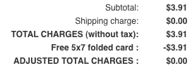 Hallmark is offering a free personalized paper card, and they’ll even ship it for you free USPS First Class. Just register for a free account, choose and customize the card you like, and check out using the promotional code is CARD4MOM. You should see the following: