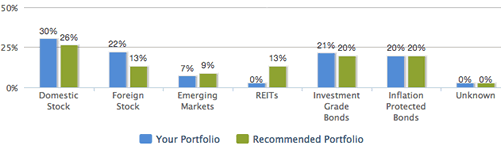 The second part of the analysis is focused on your investment holdings. How well do you match the recommended portfolio? Do you own low-cost funds? Are they tax-efficient?