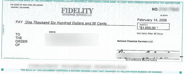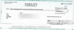 I just got my check from Fidelity for cashing out my 529 plan, courtesy of my MBNA 529 College Rewards Mastercard which gives me 2% cashback on everything I buy into that 529 account. My first disbursement request was lost in the mail, but my check finally came: