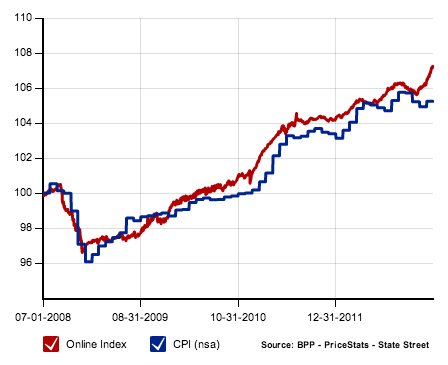 That CPI and BPP have so far tracked closely means what, exactly? That they’re far superior indicators of actual inflation? Please. Until the underlying BPP methodology is exposed, the numbers there are meaningless. From what little is said about it, it seems like it only tracks prices for online retail goods. What about housing? Energy? Utilities? Services? How about shipping charges? Since we don’t know, how can any faith be put into BPP?