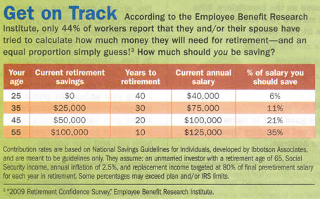 4. It is interesting to see that it is suggested to save a smaller percentage of your salary early on and then increase it. That would appear to be counter to the law of compounding interest. When someone is young (25) they are not likely to have kids or a mortgage, they should put away much more than 6%, that money will grow much much faster over 40 years. It should be suggested to put away much more early on, and then re-assess.