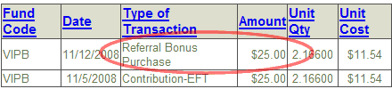 I have gotten the $25 bonuses plus several referrals, with no complaints from the people I referred. I have also started an auto-debit from my checking account for $50 a month. Right now, half of my 529 is in the Vanguard inflation-protected bond fund. This is an investment option that is unavailable in most state plans. I feel that since college is only at most 18 years away with a big lump-sum payment, I would prefer less volatility while marching towards that goal. This is in contrast to saving for retirement, where I currently have 35 years until I turn 65, and hopefully another 20 years after that as well.