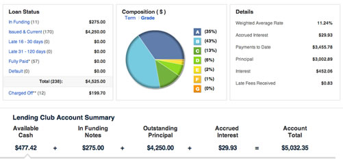 Below is a screenshot of my LendingClub account as of 12/3/12: