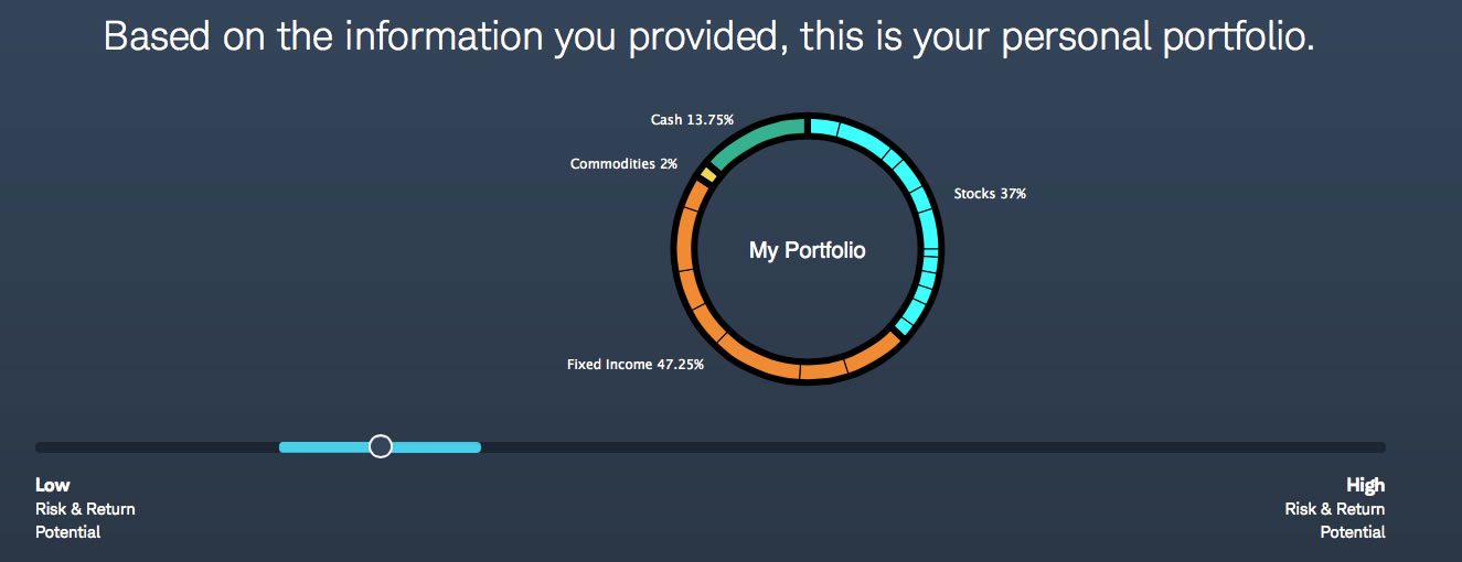 You can do the questionnaire and see your proposed asset allocation without signing up for an account. Here’s a screenshot taken from the questionnaire tool (click to enlarge).