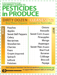 Also, some insight into EWG’s reasons for recommending organics, from FoodNews.org: “Because the toxic effects of pesticides are worrisome, not well understood, or in some cases completely unstudied, shoppers are wise to minimize exposure to pesticides whenever possible.”