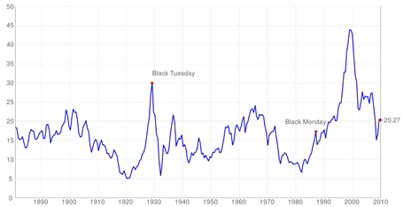 In 1950, the P/E ratio was less than 10. As of right now in mid-2010, it is 20. It is very unlikely that this more than doubling of price-per-share will happen again, with the historical average being around 15. (During the dot-com bubble, the P/E ratio was over 40. In 2008, it was over 25.) This will lead to a zero, and quite possible negative, future speculative return!