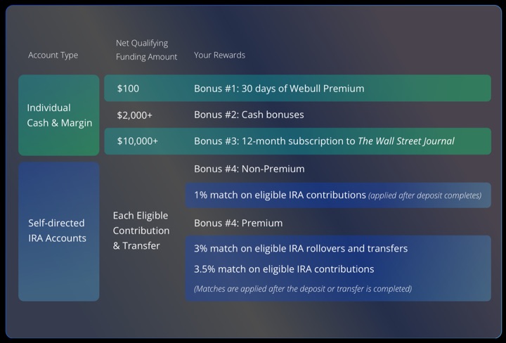 Webull Brokerage: Deposit Promos, Free WSJ Subscription, 3.5% IRA Match w/ Premium
