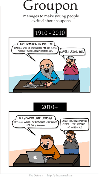 Cartoon site Oatmeal released their State of the Web a while back, and it included a bit about the deal-a-day site Groupon.
