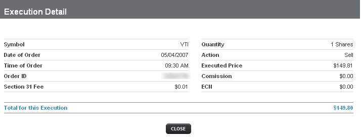 I was not charged any commission for either trade, as promised. On the sell order, I was charged a penny for a Section 31 fee. This is a small fee charged by the SEC in order to help fund their overseeing activities, which brokers pass on to us. It’s assessed only when you sell a stock.