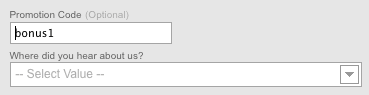 Be sure to use the promotion code “bonus1” when signing up. Be sure to use all lowercase or the code won’t work. Special terms and conditions: