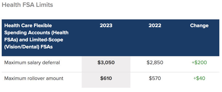 Healthcare Flexible Spending Accounts are still an commonly-available option for others. Up a little for 2023.