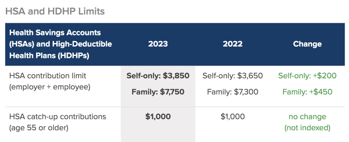 Health Savings Accounts are often treated as the equivalent of a “Healthcare IRA” due the potential triple tax benefits (tax-deduction on contributions, tax-deferred growth for decades, and tax-free withdrawals towards qualified healthcare expenses). This assumes that you have a high-deductible health insurance plan (more popular every year as they are cheaper for employers too), you can cover your current healthcare expenses out-of-pocket, and you can still afford to contribute to the HSA. Up a little for 2023.