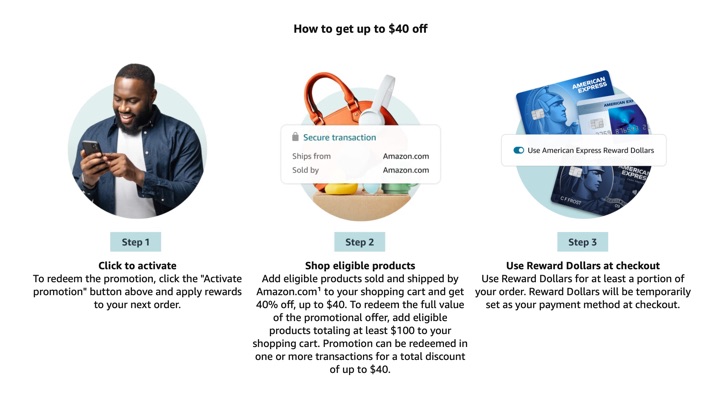 Amazon: Pay with American Express Rewards Dollars, Get up to 40% Off (Targeted)