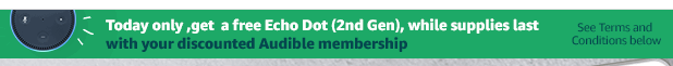 Offer available from November 19, 2018 6:00AM PT until November 19, 2018 at 11:59PM PT or while supplies last. To qualify for this offer, you must have an existing and active Amazon.com account (as evidenced by at least $1 in transactions in the 6 months prior to redemption of the offer). This offer is not available to existing Audible members. Offer applies only to an Audible monthly membership sold by audible.com. For the first 3 months of your Audible membership, you will be charged the discounted price of $6.95/mo. After the first 3 months, your Audible membership will continue at the then current full price (currently $14.95/mo.) until cancelled. Cancel anytime by visiting the Account Details page. After you sign up for your membership and your payment information is verified, you will receive a confirmation email and the Amazon.com account that you used to sign up for your membership will receive a $39.99 credit (within 48 hours after sign up) redeemable for an Echo Dot (2nd Generation) device.