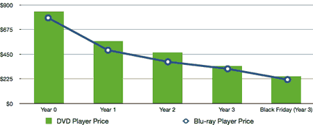 I found this interesting chart on Gizmodo about how Blu-Ray players are basically following the same price trajectory as traditional DVD players: