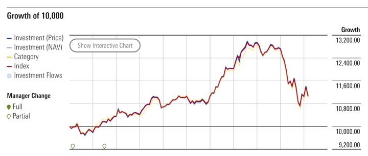 If you zoom out on the Growth of $10,000 chart for the Vanguard Total Bond ETF, you can see it going up from the rate cuts and back down with the rate hikes. $10,000 invested in 2013 is worth about $11,000 today. That’s not a great rate of return but the ride was smooth compared to other asset classes, and with shorter-term bonds, it would have been even milder.