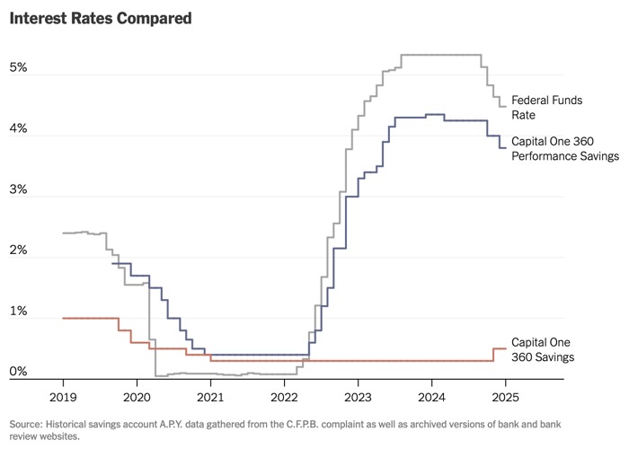 Capital One settled a class action settlement involving alleged deceptive marketing because it kept the interest rate on customers with deposits in their older “360 Savings Account” lower without closing them, while simultaneously marketing a new “360 Performance Savings Account” at a higher interest. Many people in the older accounts either thought they were the same or thought they were getting the higher, marketed interest rate. Anyone who had an original “360 Savings” account between 9/18/19 and 6/16/25 is included in the settlement.