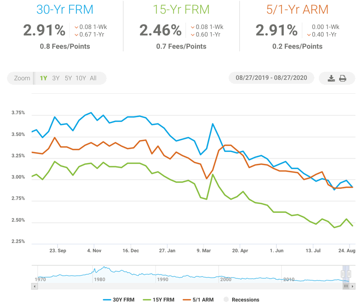 Mortgage rates have hit another all-time low, with some 30-year fixed rate mortgages below 3% and 15-year fixed below 2.5%. I know that many folks have already refinanced successfully, but these lower rates may offer even more homeowners the ability to lower their payments and/or pay off their home sooner. Importantly, Fannie Mae and Freddie Mac announced an additional 0.5% fee on refinances that was supposed to start on 9/1, but that was just