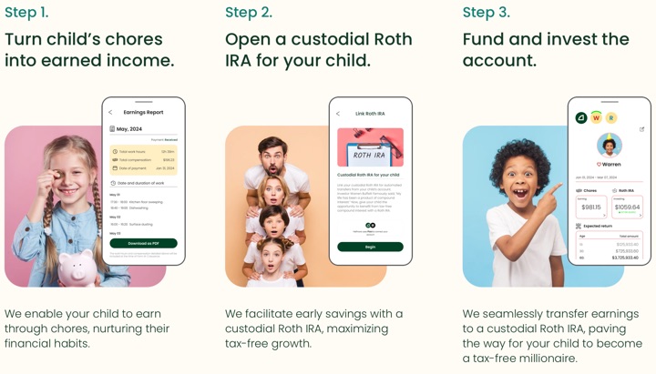 There are many apps in the “reloadable debit card for kids” category, where parents can transfer money into their account and kids can spend it. However, I have been looking for a better app that can illustrate the power of compound interest and deferred gratification.