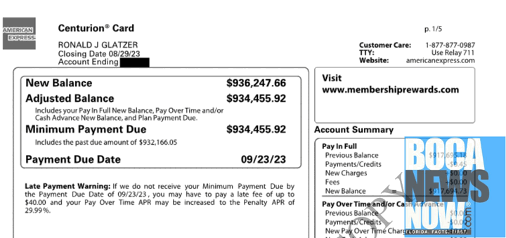 Forget trying to grab a few credit card bonuses and maximizing your cash back, an Florida ophthalmologist allegedly decided to go much bigger. According to BocaNewsNow.com, American Express is suing Ronald Glatzer for an unpaid $934,455.92 balance (now over $936,247.66 with interest and fees) on his American Express Centurion Card. 😳