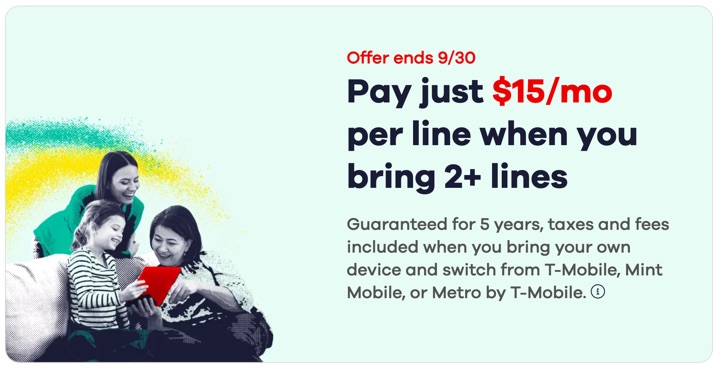 If you currently have cell service from T-Mobile, Metro, Ultra Mobile, or Mint Mobile (all owned by T-Mobile), consider this aggressive deal from Total Wireless (owned by Verizon). You must switch over at least 2 lines and bring your own device. Importantly, this offer also ends soon 9/30/24. Here is the press release, and the offer page is Totalwireless.com/byebye.