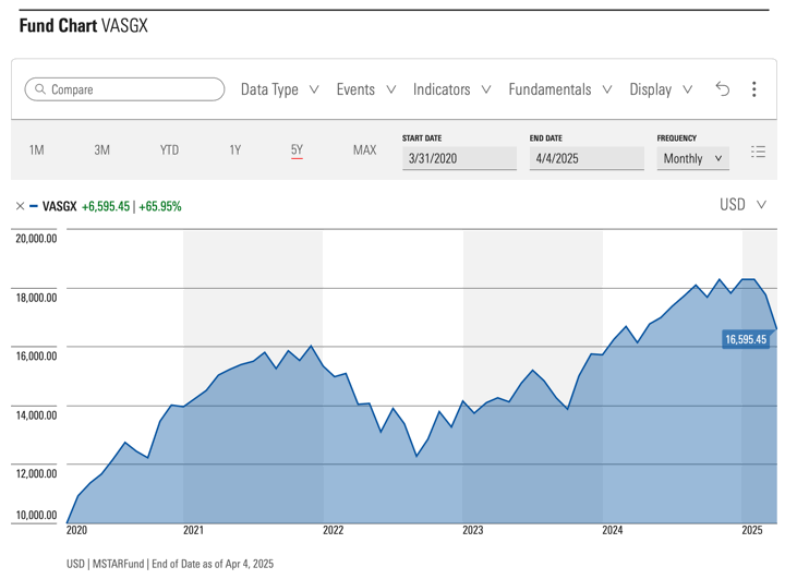 Takeaways: International stocks have had a very bad run, performing worse than long-term US bonds. T-Bills/Cash staked out their usual position as low risk/low return. I would also note that the difference between a 7% average annual return and a 3% average annual return over 25 years is huge, and this chart doesn’t really communicate that.
