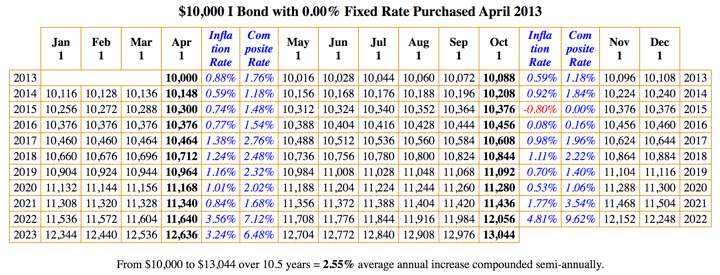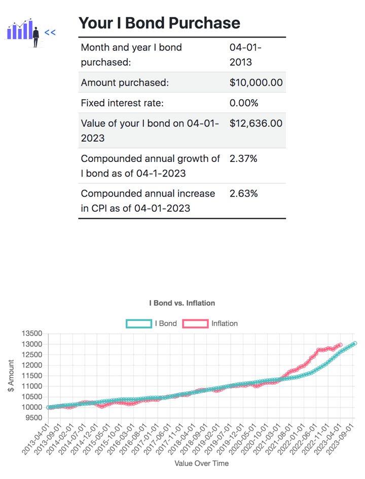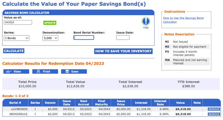 If you have accumulated some savings bonds but don’t really enjoy logging into TreasuryDirect.gov all the time, here are some alternative methods to tracking your balances over time. Each has its own strengths and weaknesses, and the unofficial ones are the results of motivated DIY investors. As an example, I will track a Savings I Bond purchased in April 2013 for $10,000.
