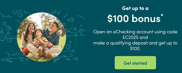 Promo details. Must open a new eChecking account with the promo code EC2025, or existing customers with an eChecking account must enroll their accounts through the offer link.