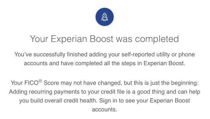 After adding my self-reported utility accounts, I was rewarded with… no FICO score increase. Here’s the message I received:
