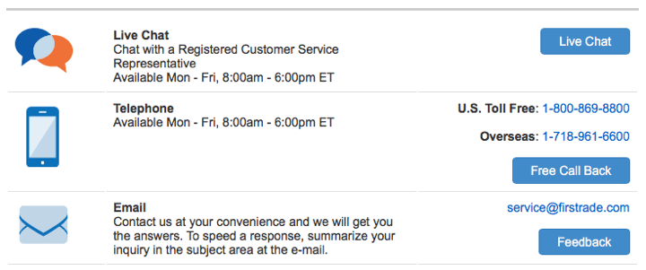 Bottom line. Firstrade is a discount broker with real human customer service that is moving to the new world of app-centric trading, offering free online trades on all stocks, exchange-traded funds (ETFs), options and mutual funds. No minimum account requirements.