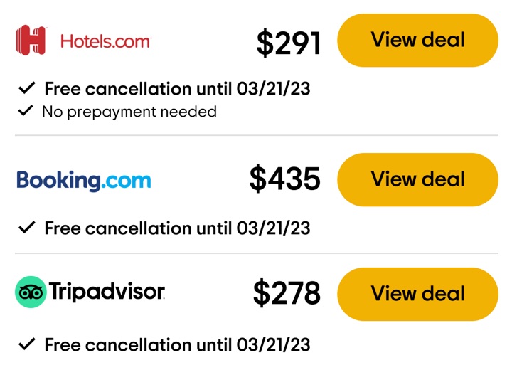 Direct with TripAdvisor Plus was $217 + taxes ($69 savings):