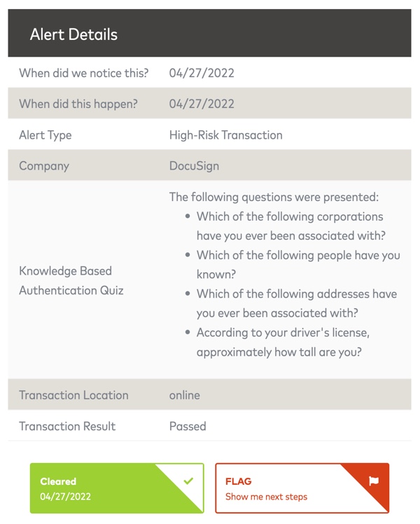 Previously, this service has also alerted me that my personal information like name/email have been found in data breaches from random websites like autoexpresscars.com and drivesure.com. These are all events that did not trigger any alerts from my other credit bureau-based monitoring services. Therefore, I feel signing up for this additional free service rounds them out. Services like Docusign are useful but open you up to potentially more severe cases of fraud.