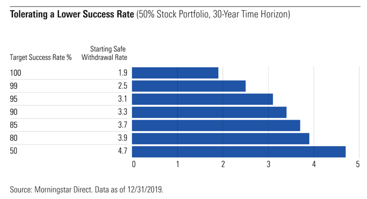 Instead of focusing on the 3.3% base rate, look at the various ways you can improve it. The 3.3% base rate assumes a 50% stock/50% bond portfolio, fixed withdrawals (adjusted upwards for inflation annually, no matter what) over a 30-year time horizon, and a 90% probability of success. What if you changed up some of these assumptions?
