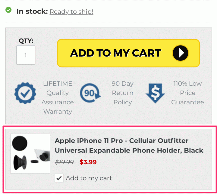 • Sneak into basket: Additional products placed in shopping carts without consent, like accessories (CellularOutfitter) or warranty/insurance.