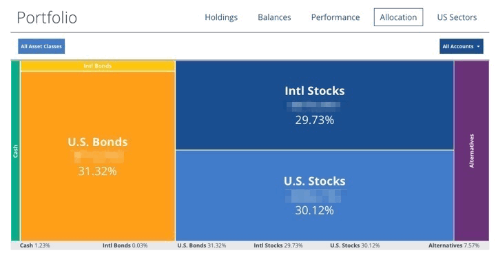 Here is my portfolio performance for the year and rough asset allocation (real estate is under alternatives), according to Personal Capital: