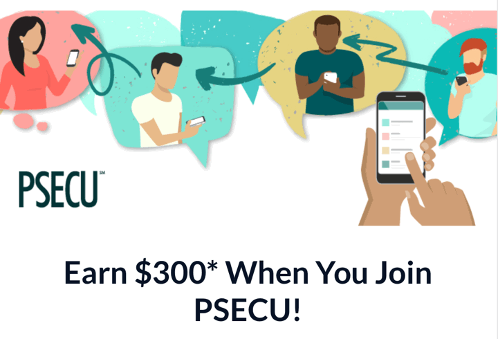- Become a PSECU member using promo link and promo code 300REFER (should be automatically applied) and be approved for at least one savings and one checking account with debit card.