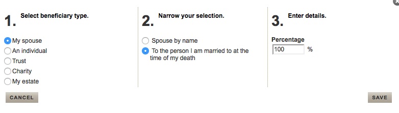 • Contact your IRA custodian. I use Vanguard, and you can either fill out this paperwork kit or do it all online under Account Maintenance > Beneficiaries. They use some language to simplify the process. For example, I set my primary beneficiary as the “person I am married to at the time of my death” and my secondary beneficiary as “To my descendants who survive me, per stirpes”. I may change this later. Find out what per stirpes means and more with this Vanguard guide.