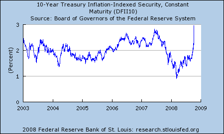 Coincidentally, the last few weeks have given us a huge surge in the real yield offered by TIPS, around 3%. This is the highest it has been in many years: