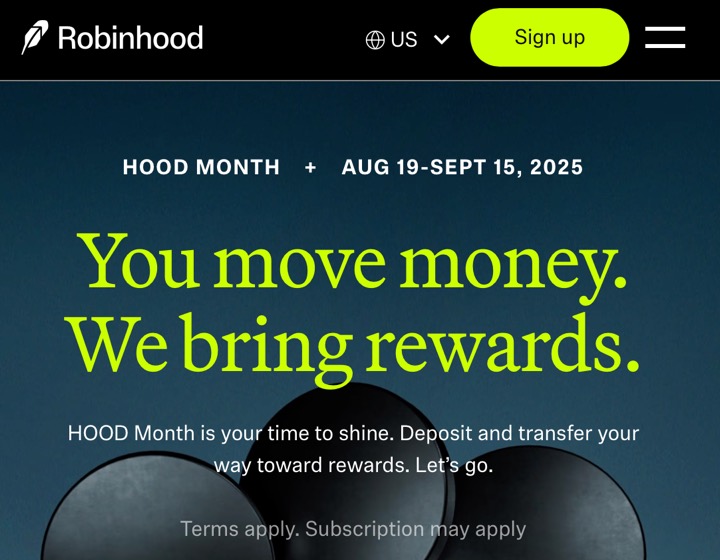 Robinhood is running “HOOD Month” from 8/19-9/15/25, and included are some competitive account transfer bonuses. Noteworthy are the 3% total match if you have $100,000 in margin (which you can “create” beforehand) and the 2% match that includes 401k rollovers. However, note that they have very long minimum holding periods where you are stuck at Robinhood (and can’t pursue other opportunities) or they will clawback the bonus.