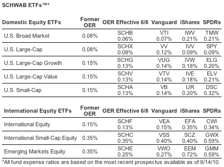 - Schwab U.S. Broad Market ETFTM from 0.08% to 0.06%