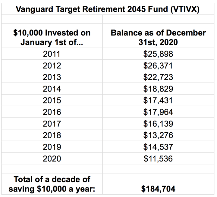 The last 10 years of stock market returns have been pretty remarkable. If you invested $100,000 in the S&P 500 in the year 2000 and held it though the dot-com crash and financial crisis, you would be closing in on $300,000 today. However, if you retired in 2000 with a portfolio invested in the S&P 500 and used a 4% withdrawal rate (increasing each year by 3% for inflation), your nest egg would less than $50,000 and on a path to zero!