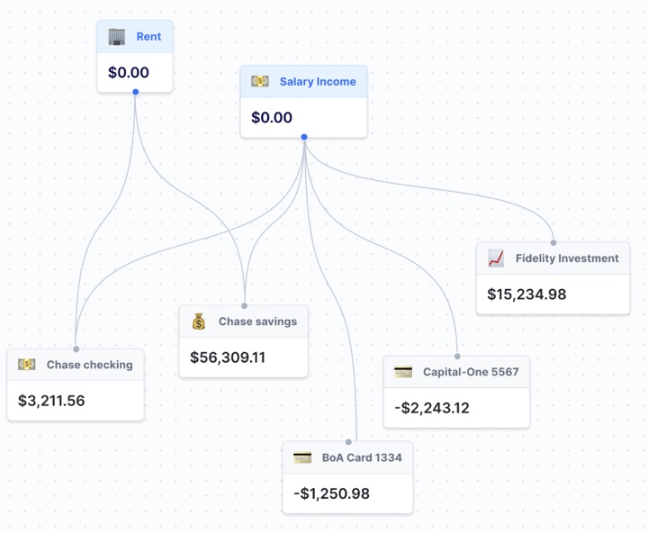 I receive inflows from a variety of sources: my W2 job, monthly or quarterly dividends from investment platforms like Fundrise and Yieldstreet, and P2P payments when I split bills with friends. Having all these inflows run through a single, cohesive system of rules has been a huge time saver for me.