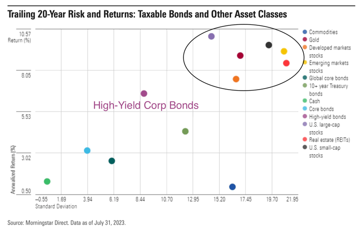 But hey, those high-yield bonds still returned a lot more money over the last 20 years instead. Why not just hold those instead? First, don’t forget to step back and look at the bigger picture:
