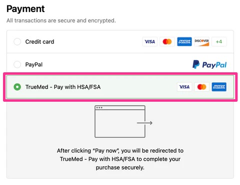 While shopping for a Zwift smart trainer bike, I came across a new checkout option called TrueMed that lets you “pay with HSA/FSA”. TrueMed claims to “unlock tax-free HSA/FSA spending for the leading exercise, healthy food and supplement companies”.