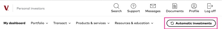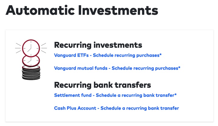 To find it, look for the “Automatic Investments” button on the main page after login. If you are already logged into Vanguard, you could try clicking this link.