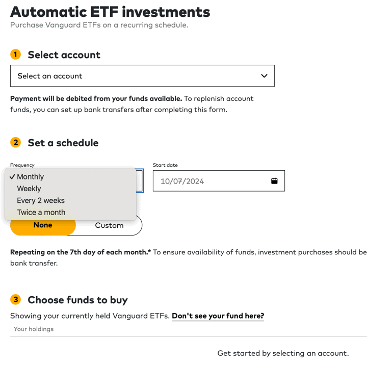 You then see the option to schedule recurring purchases of ETFs in addition to mutual funds.
