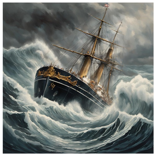 Image credit: Canva AI generated with prompt “HMS Vanguard in rough seas”