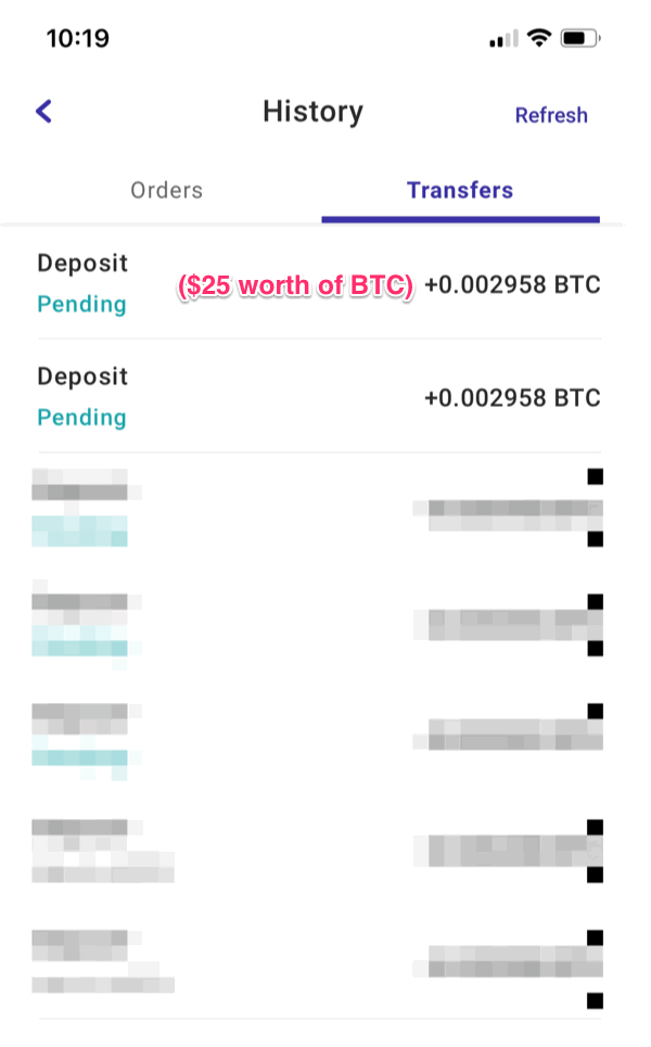 Here is my $25 BTC referral link (open via smartphone), although it just redirects to the App Store. Thanks if you use it! In order to ensure you are credited properly, be sure to enter my referral promo code JONA3F in the “Reward Code” area during the account sign-up process, fund your account, and trade $100 of BTC. You should then see $50 of BTC deposited in your account within 72 hours as a referral bonus. You can also then start referring others for more bonuses. Contact rewards@investvoyager.com if you need support. Here’s a screenshot from my account showing the former $25 BTC bonuses: